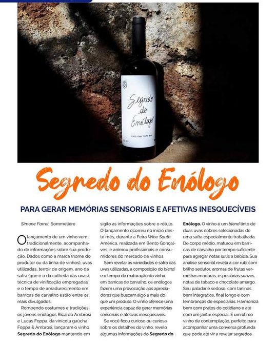 Mais um grande destaque, nacional e internacional, para o nosso maior lançamento até hoje: Segredo do Enólogo.
