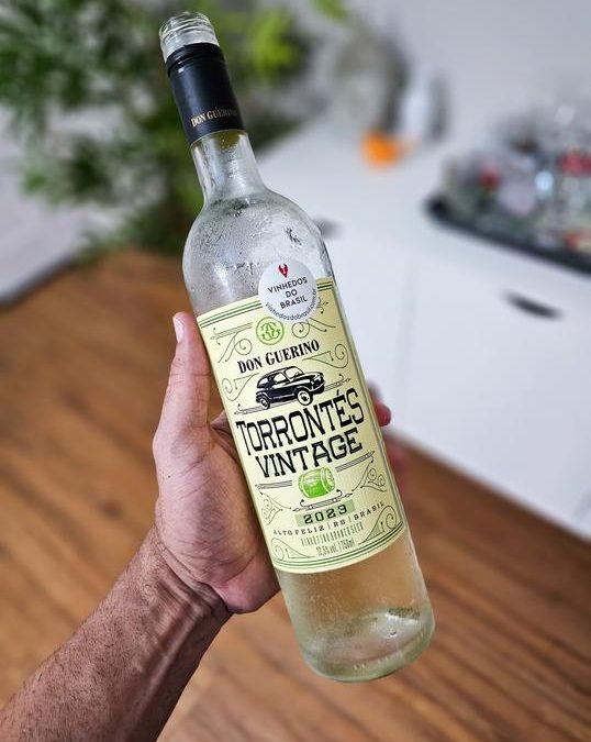 Aqui eu estou falando do Don Guerino Vintage Torrontes 2024, branco seco da Serra Gaúcha, produzido em Alto Feliz pela vinícola Don Guerino, com enologia do Bruno Motter. É 100% Torrontés, safra 2023, 12,5% de álcool e aquela pegada bem aromática que o Brasil vem sabendo fazer.